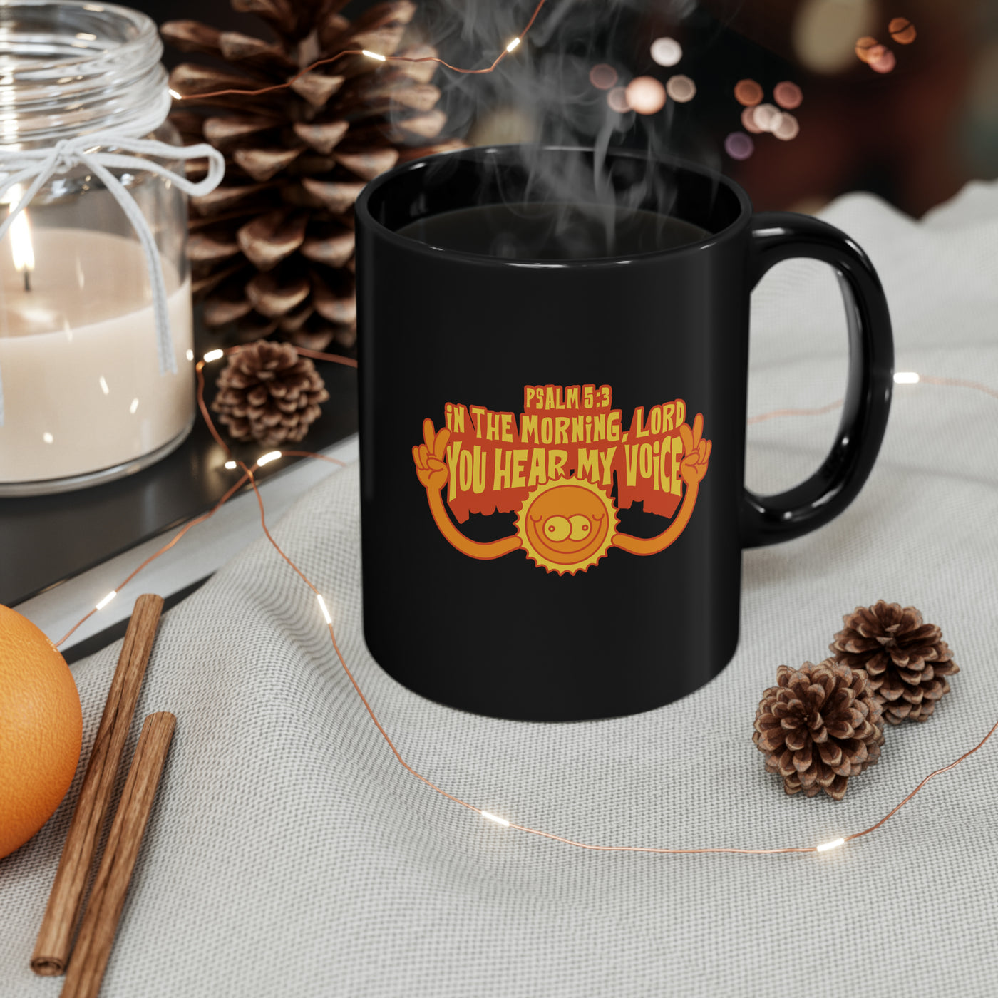 Introducing In The Morning Black Mugs. Start your day with inspiration using this Christian coffee mug, perfect for your morning routine. This coffee cup features an uplifting faith-based design, bringing a touch of spirituality to every sip. This Christian coffee cup is crafted for durability and style, making them ideal for daily use. Enjoy your favorite beverage with this 11oz coffee mug that reflects your beliefs and brightens your day.